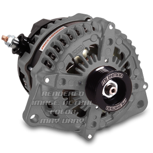 This unit comes equipped with a smaller 1.75 inch diameter alternator pulley, and will require a slightly shorter drive belt for proper belt tension. Not recommended for sustained use above 5,000 RPM engine speed.