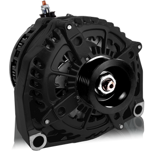 NEW! - The cast housing Elite series alternator offers the highest possible amperage and durability available in a large case alternator. 6 phase technology combined with massive twin rectifier assemblies and 12 diodes makes these alternators totally durable for daily use, while still maintaining great output: 180 amps at engine idle speeds and a full 250 at cruising speeds. This unit comes with an OEM diameter pulley, making it perfect for high RPM and racing use and uses stock belt length.