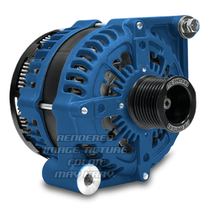 This newly introduced CAST version of our already eye-catching Billet versions packs the same modern 6 phase hairpin technology but in a more budget friendly and paintable case! Great for applications where you need the 200 amps at idle and 400+ amps at cruising but want to color coordinate or contrast your engine theme/look.