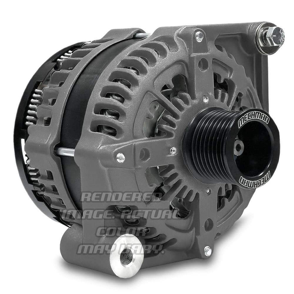 This newly introduced CAST version of our already eye-catching Billet versions packs the same modern 6 phase hairpin technology but in a more budget friendly and paintable case! Great for applications where you need the 200 amps at idle and 400+ amps at cruising but want to color coordinate or contrast your engine theme/look.
